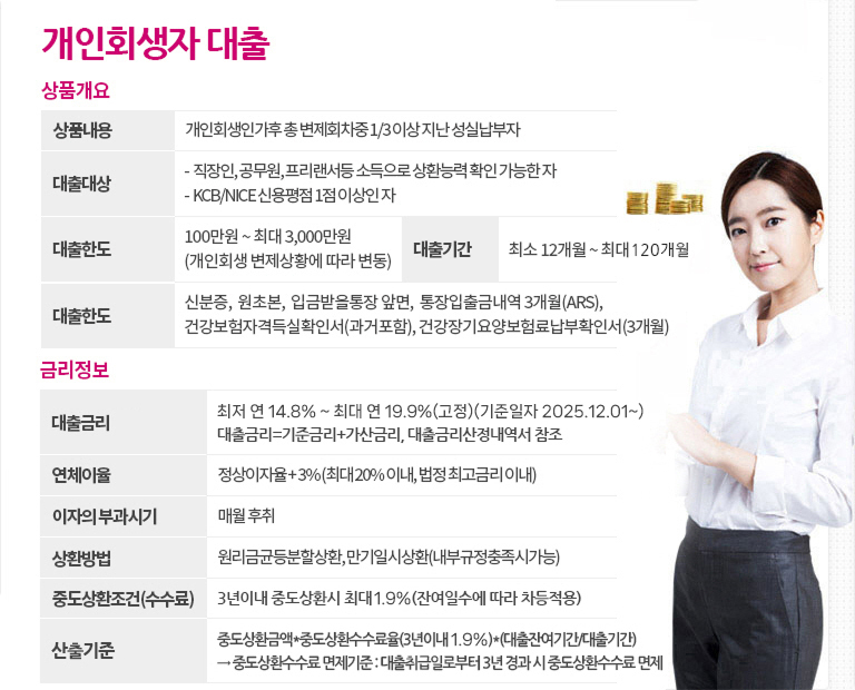 - 개인식별정보[성명, 생년월일, 성별, (휴대)전화번호, 주소, 직업(직장명, 주소, 전화번호, 사업자번호), 계좌번호, 거래은행]
